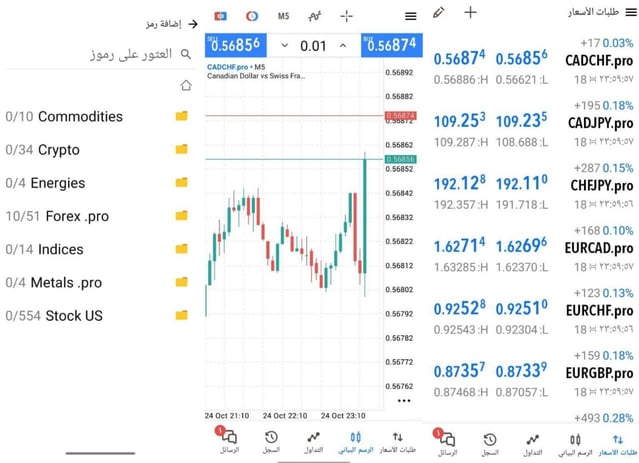 | فوركس | تتيح تداول 60 زوجا تشمل أزواج فوركس الرئيسية والثانوية والنادرة |